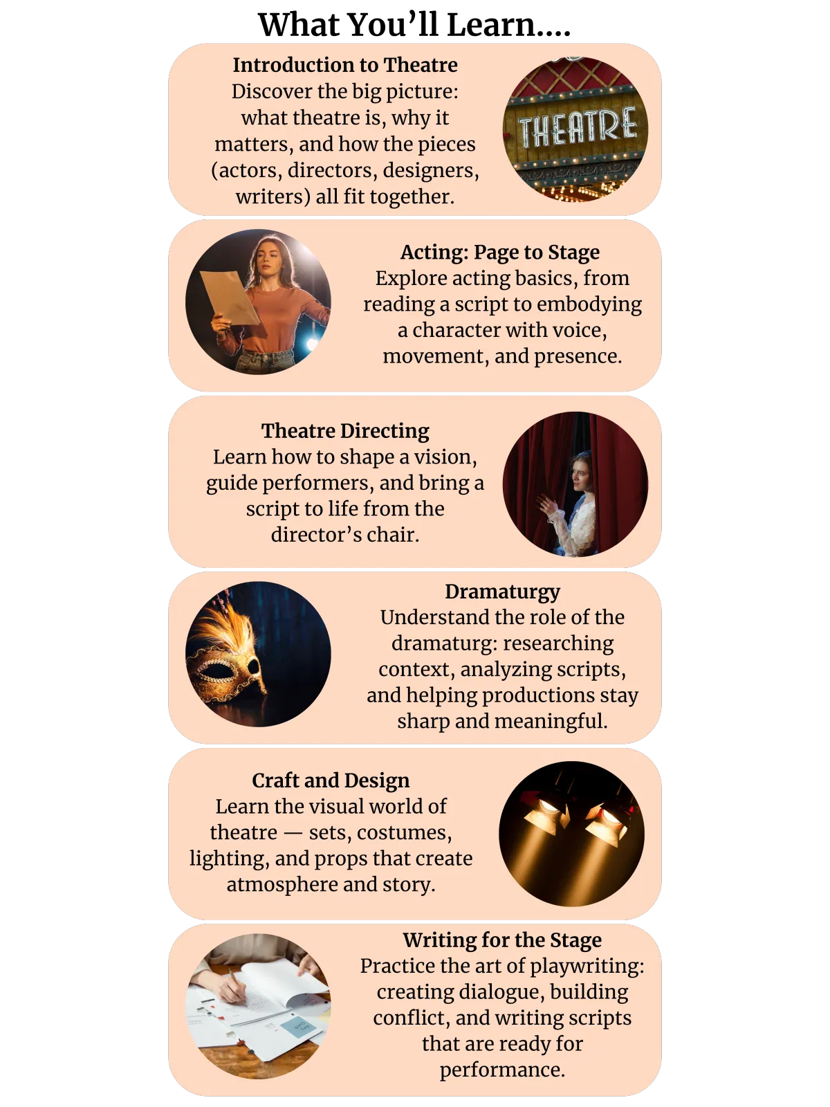 I’m passionate about sharing the timeless beauty of theatre—its craft, wonder, and human connection—without the cost and drama of today’s theatre university programs.